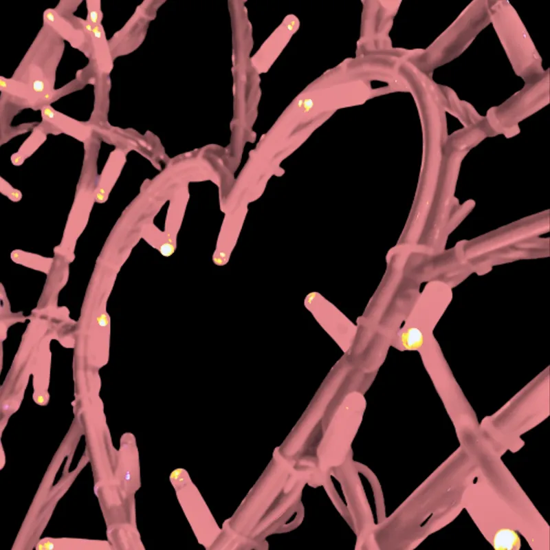 Figura 2D, elaborada en bioprint color rosa y perfilado con serie led blanco cálido.