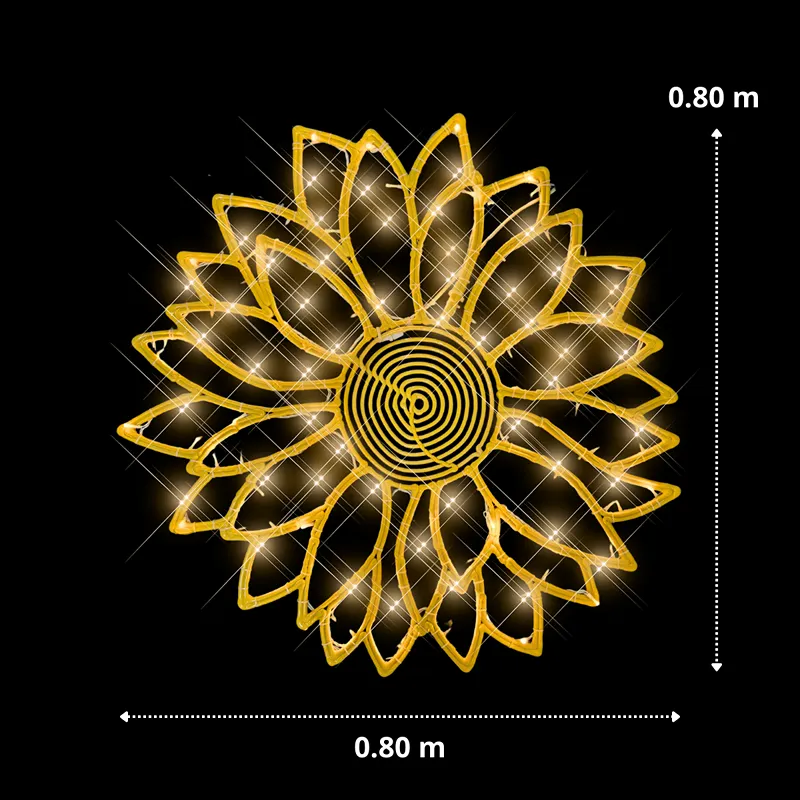 Este adorno Girasol LED grande representa una inversión inteligente para quienes buscan figuras de alto impacto visual con un peso manejable (6 kg). Entendemos que para proyectos gubernamentales, hoteles o centros comerciales, la facilidad de instalación y la resistencia climática son prioridades críticas para asegurar una operación libre de problemas logísticos.