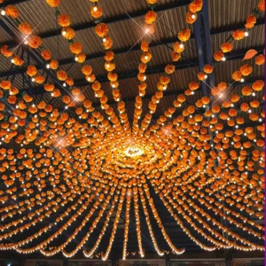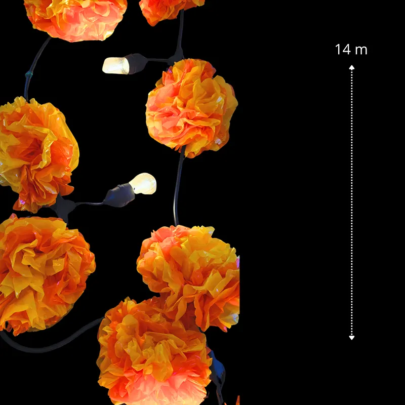 *El precio incluyen IVAGuía decorada con flores de cempasúchil plásticas y 24 bombillas vintage.