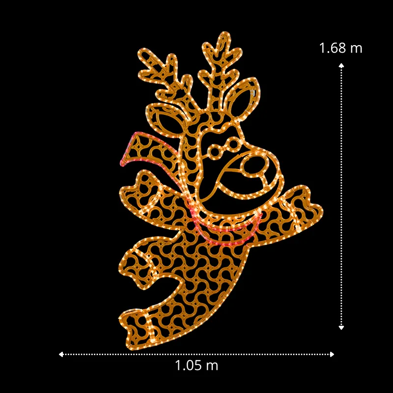 En seguida puedes descargar la ficha técnica en PDF de la figura LED gigante en forma de Reno con bufanda
